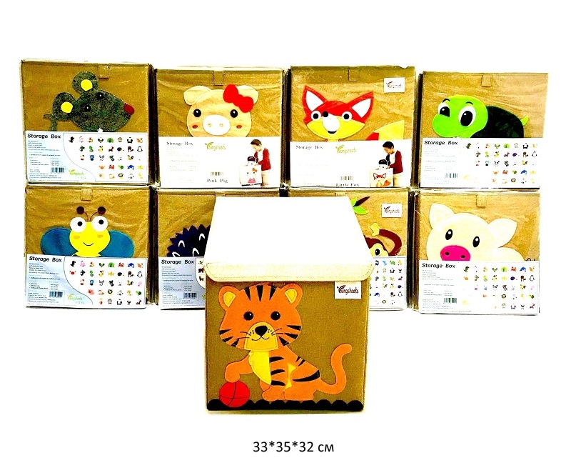 Корзина для игрушек арт. AL004-1 Зверята в ассортименте, с крышкой в пак._/50 шт./