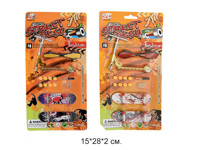 Скейтик арт. 012-888-805 Пальчиковый набор 3 шт. и самокат на листе