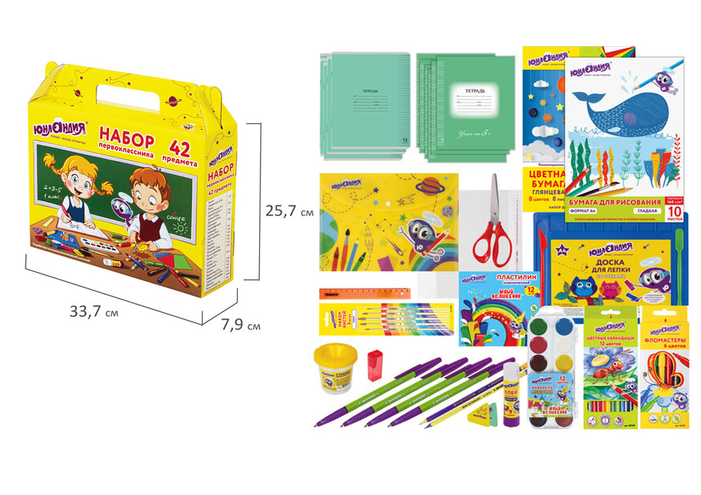 кс_Набор школьных принадлежностей в подарочной кор. 880118 ЮНЛАНДИЯ "НАБОР ПЕРВОКЛАССНИКА", 42 предм