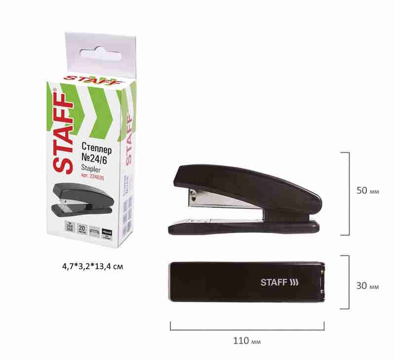 кс_Степлер №24/6, 26/6 арт. 224626 STAFF "Basic" до 20 листов черный