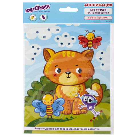 Набор для творчества "Аппликация из страз самоклеящаяся", "Котёнок", 20х15 см, ЮНЛАНДИЯ, 662373