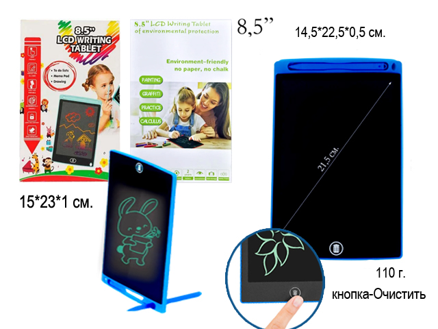 Планшет для рисования арт. 8501BB/8501C/8501J-805 На батар. 8,5 в кор._•~+=Удобная альтернатива блокнотам, альбомам для зарисовок, липким заметкам и другим средствам для записей и рисования. Не наносит вред зрению, безопасен в применении, развивает мелкую моторику, творчество и мышление, экономит время и деньги. Рисунок получается одноцветным.