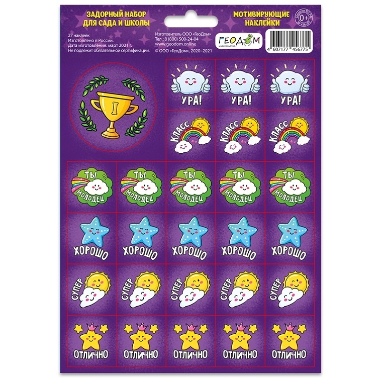 кв_Наклейки мотивирующие арт. 4607177456775 ГЕОДОМ "Задорный набор для сада и школы", 148*210мм