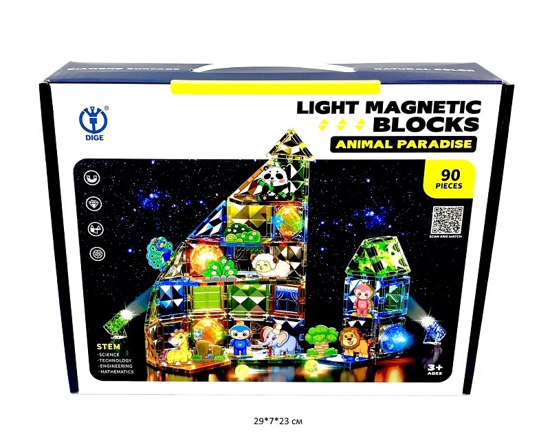 Конструктор магнитный арт. 8800 Зверята светящ. 90 дет. в кор._