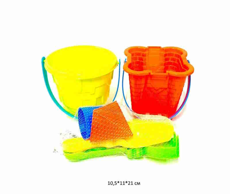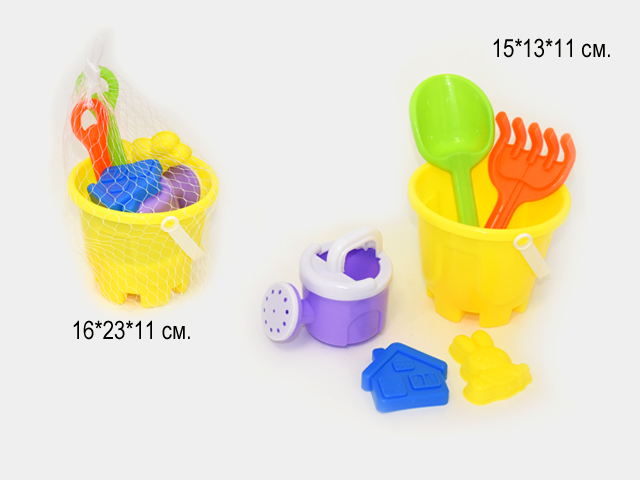 Песочный набор арт. 214A Ведро с лейкой и аксессуарами в сетке_/60 шт./