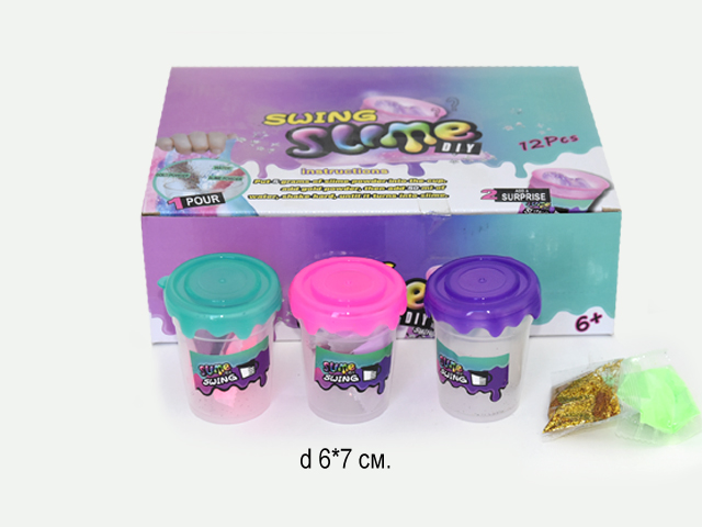 Лизун арт. 202 "Создай лизуна" Прозрачный стакан, блестки в кор.~/720шт./