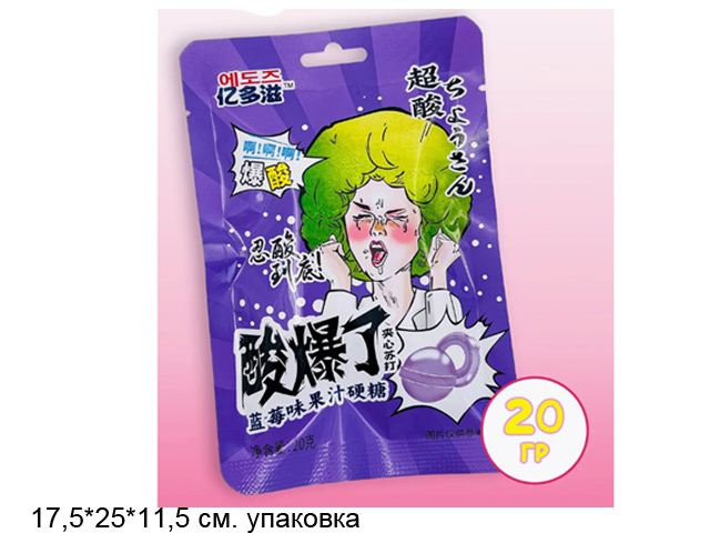 Конфета арт. 640206-2 Суперкислая "Виноград" 20 г 20 шт. в фиолетовой кор./*