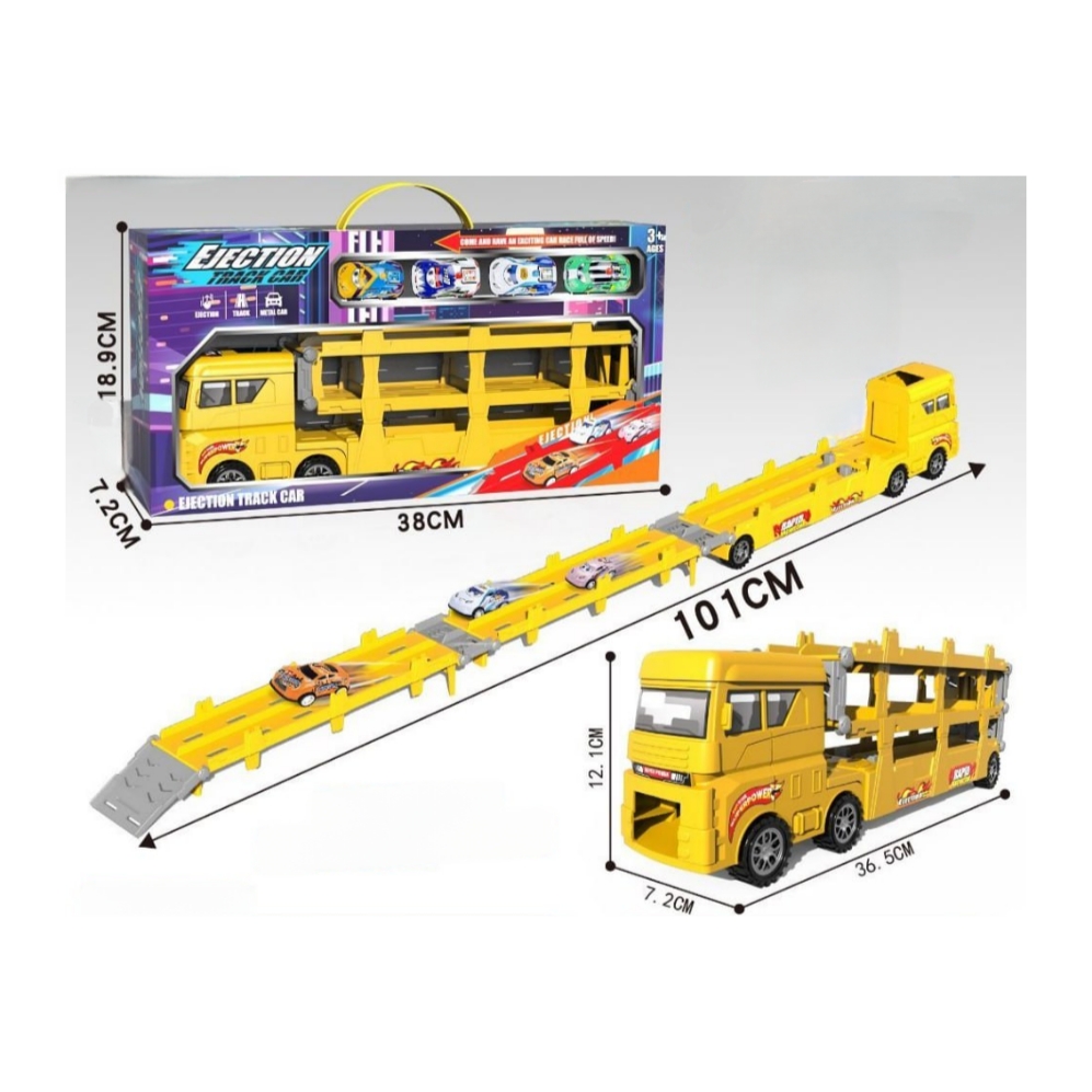 Машина арт. F3555-42 Автовоз-катапульта с трассой 101 см + 4 машины свет, звук в кор. 38*7,2*18,9
