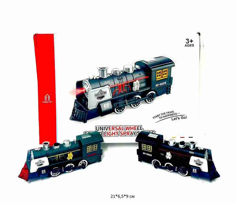 Паровоз арт. 731-40A Цвета микс на батар. свет, звук, пар (8 шт.) шоубокс_