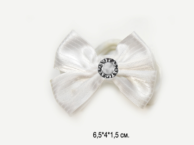 Бант арт. W01-2-709 Белый полоска продольная с круглым центром на резинке (24 шт.) на листе